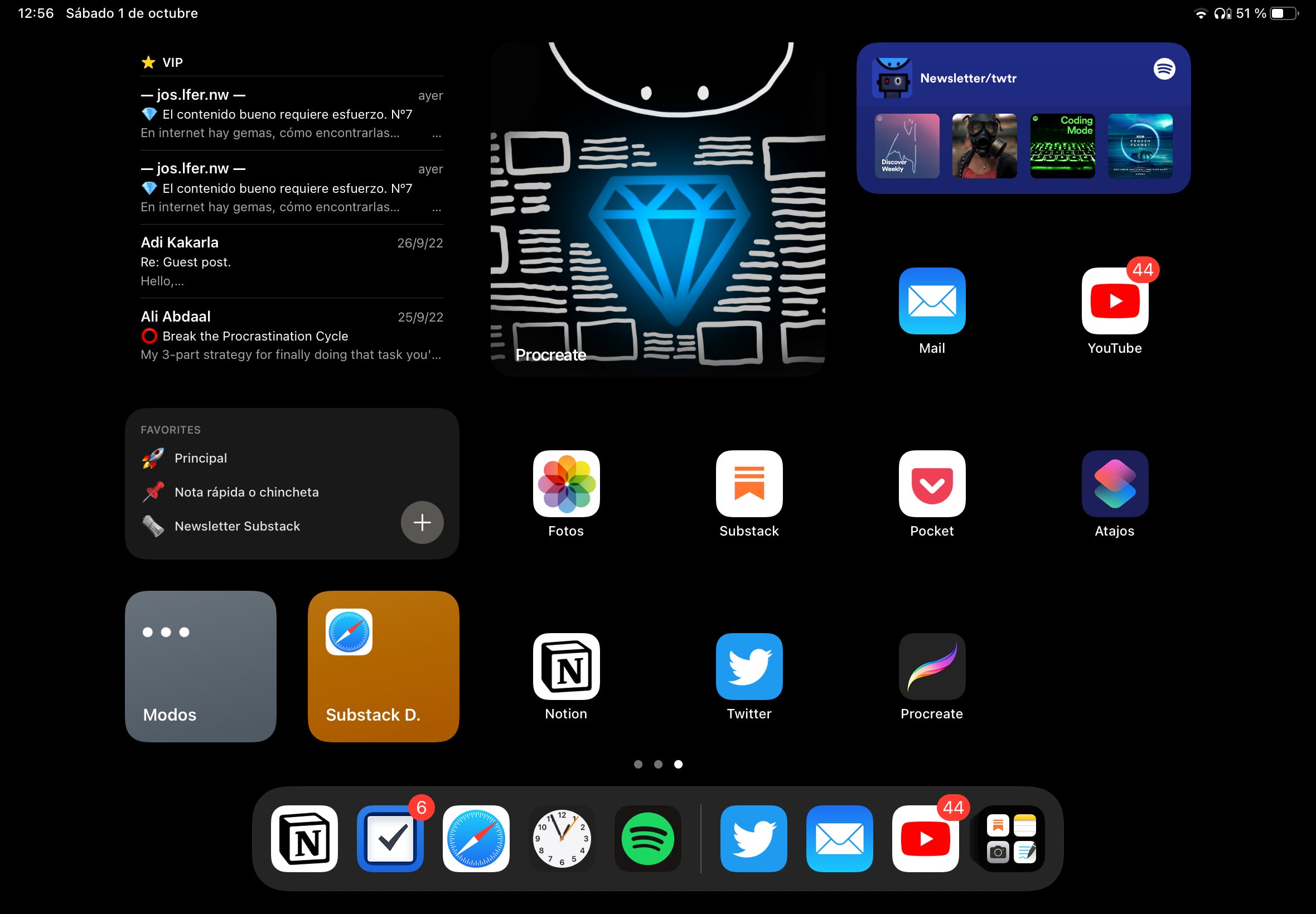 I have a mail widget, a Spotify widget, and a Procreate widget that I love.