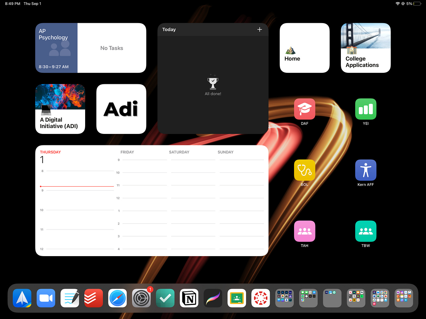 None of the apps listed are “distracting apps” (like YouTube or any games). Other than settings, they’re all apps I use for scheduling, homework, personal projects, and creative work.